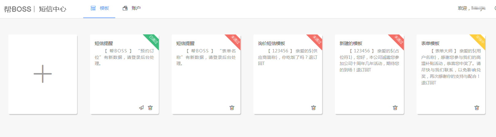 创建短信模板,点击保存后即进入审核后台。一经进入审核状态(审核中、已通过或未通过),模板内容均不可再次编辑修改;审核通过后可进行发送;审核中或未通过,则无法进行修改、发送操作,仅能删除。