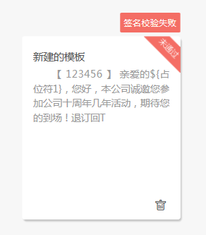 短信内容如果不合规,将会不予通过,并同时打上审核失败的标记。将鼠标移到标记处,会显示审核失败的原因。